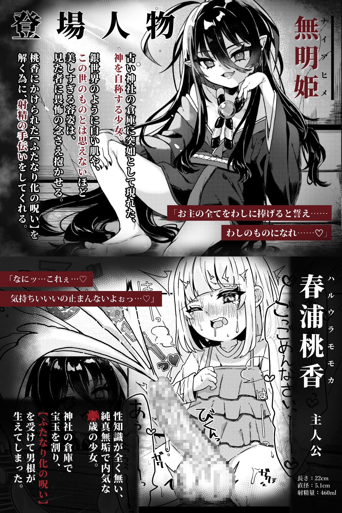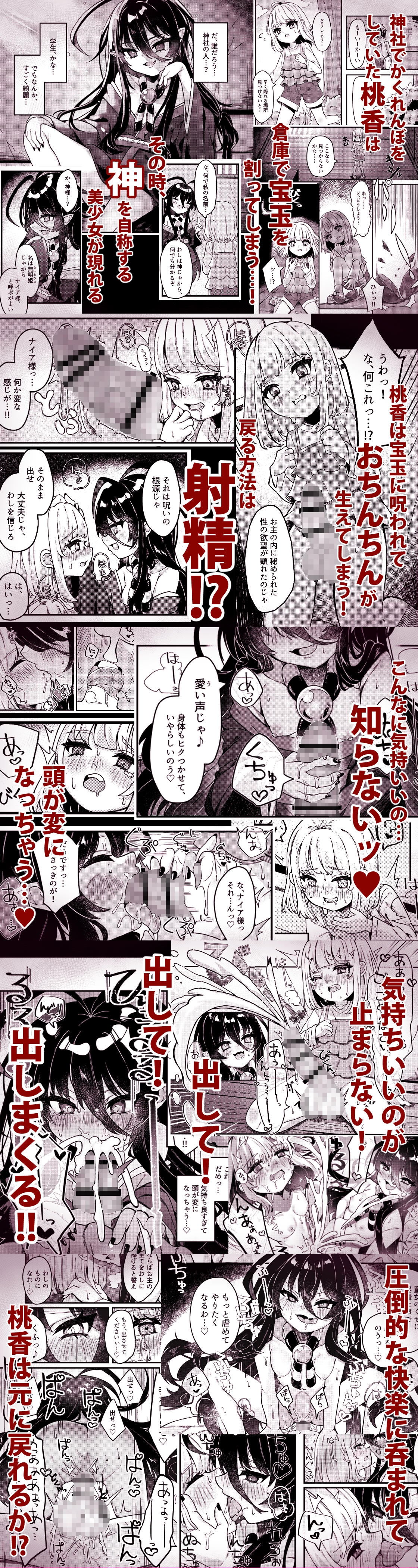 性知識のない少女「春浦桃香」は、神社で遊んでいるときに宝玉を壊し『ふたなり化の呪い』を受けてしまう。純真無垢な少女はその日、射精の快楽を知る――。