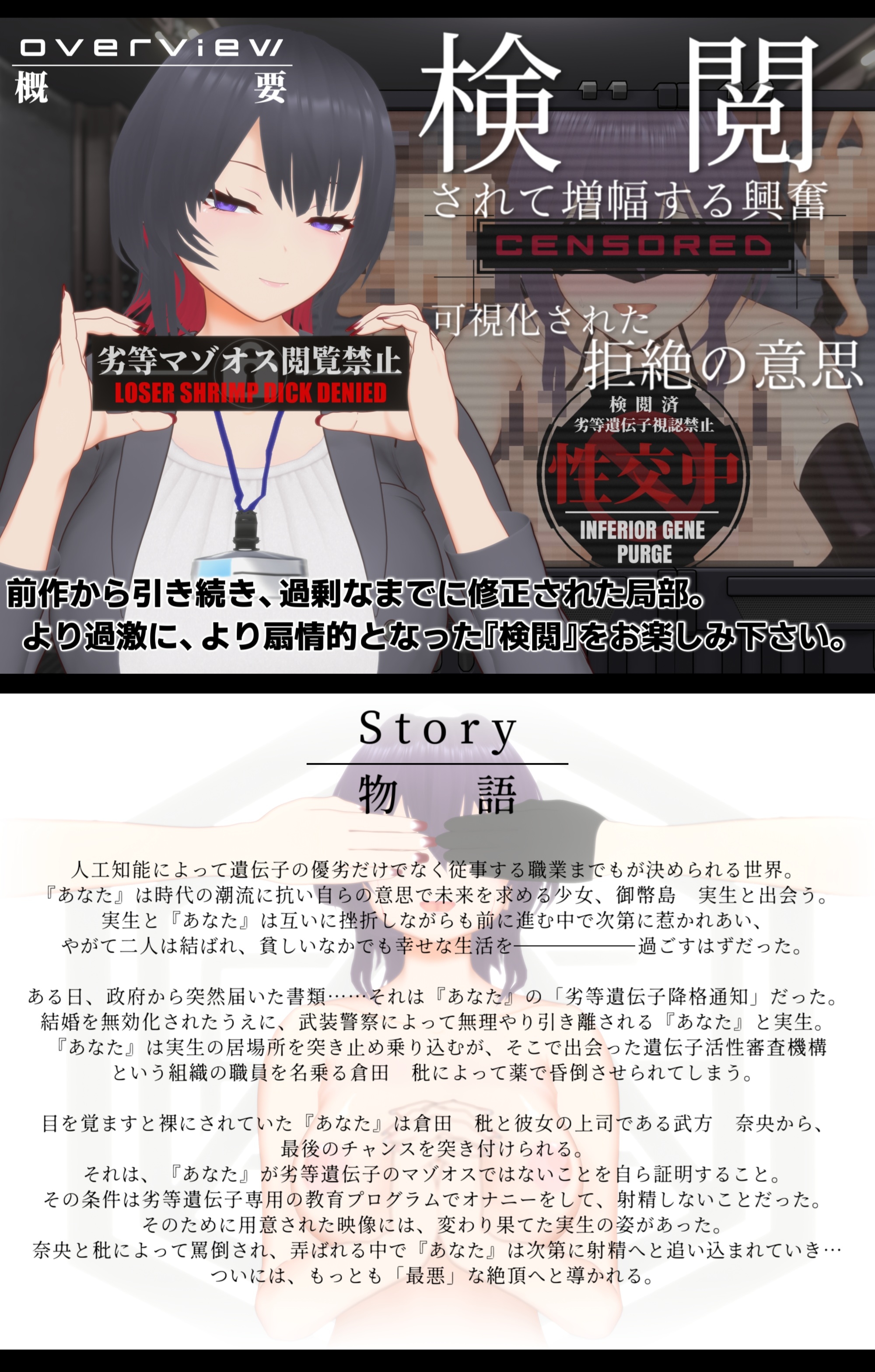 - 作品タイトル: 【オナサポ3Dアニメ】性癖破壊マゾオナニーW ~愛する妻のNTR乱交ハメ撮りで地獄の射精我慢オナニーサポート~