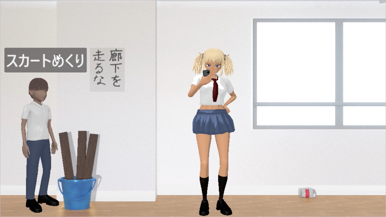 ステージ1ではギャルが後ろ向きのときにボタンをクリックしてスカートめくりをします