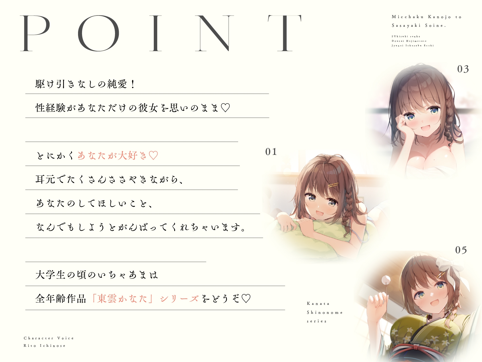 - 作品タイトル: 密着カノジョとささやき添い寝。 ~好き好き連呼♡同棲はじめたて純愛いちゃらぶえっち~