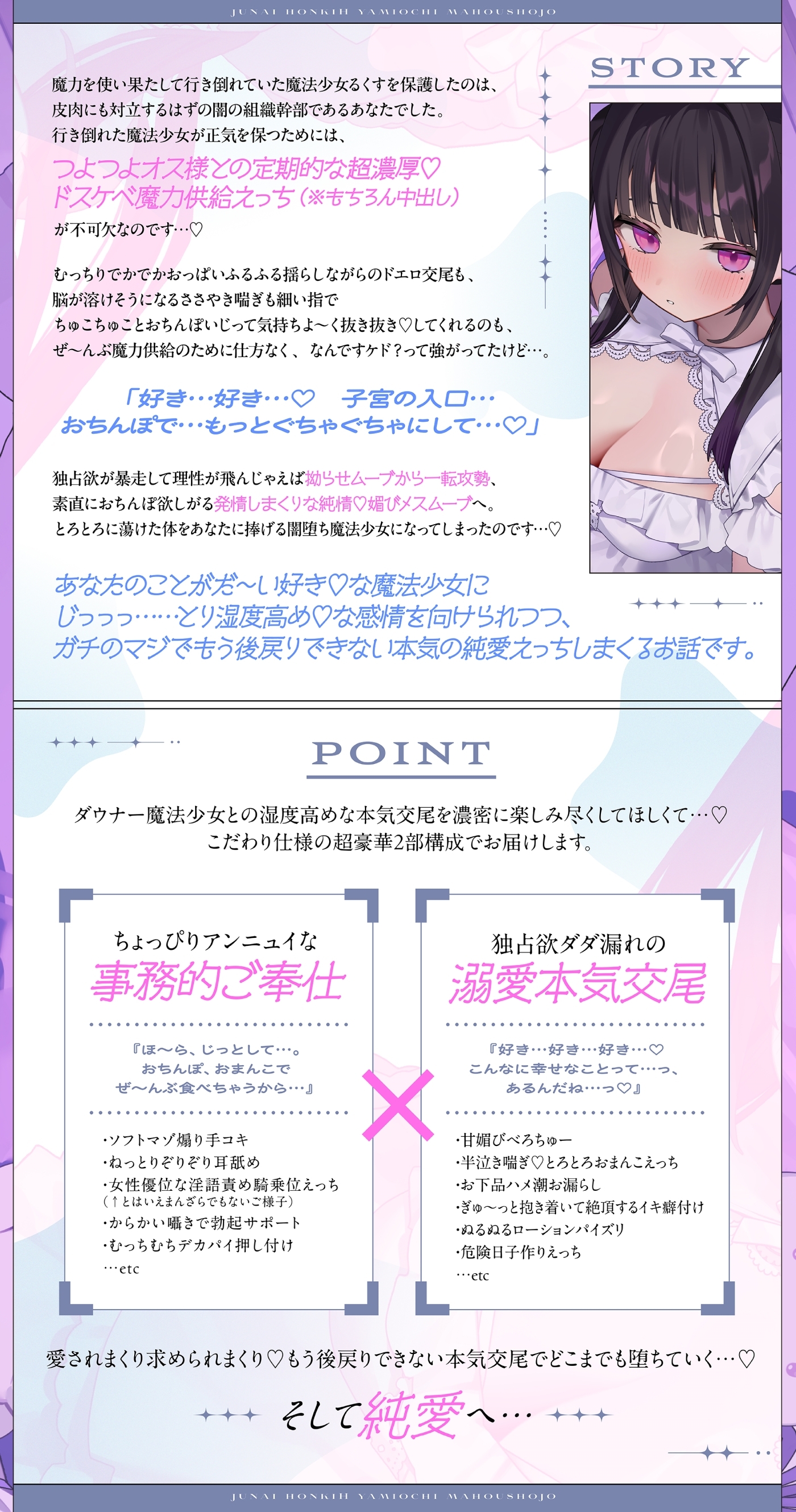 『✅早期購入特典付き【4時間】純愛♡闇堕ち魔法少女 ~強がりおまんこ×こじらせダウナー×魔力供給⇒連続イキ♡湿度高めなラブハメ本気交尾しまくるお話~cv.来夢ふらん|いっしんふらん』この可愛いエロDLの作品内容