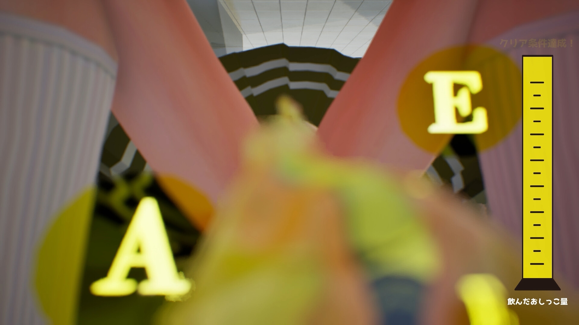 タイミングよくキーを押すと「おしっこ」を飲むことができ、「飲んだおしっこ量」ゲージが増えます。