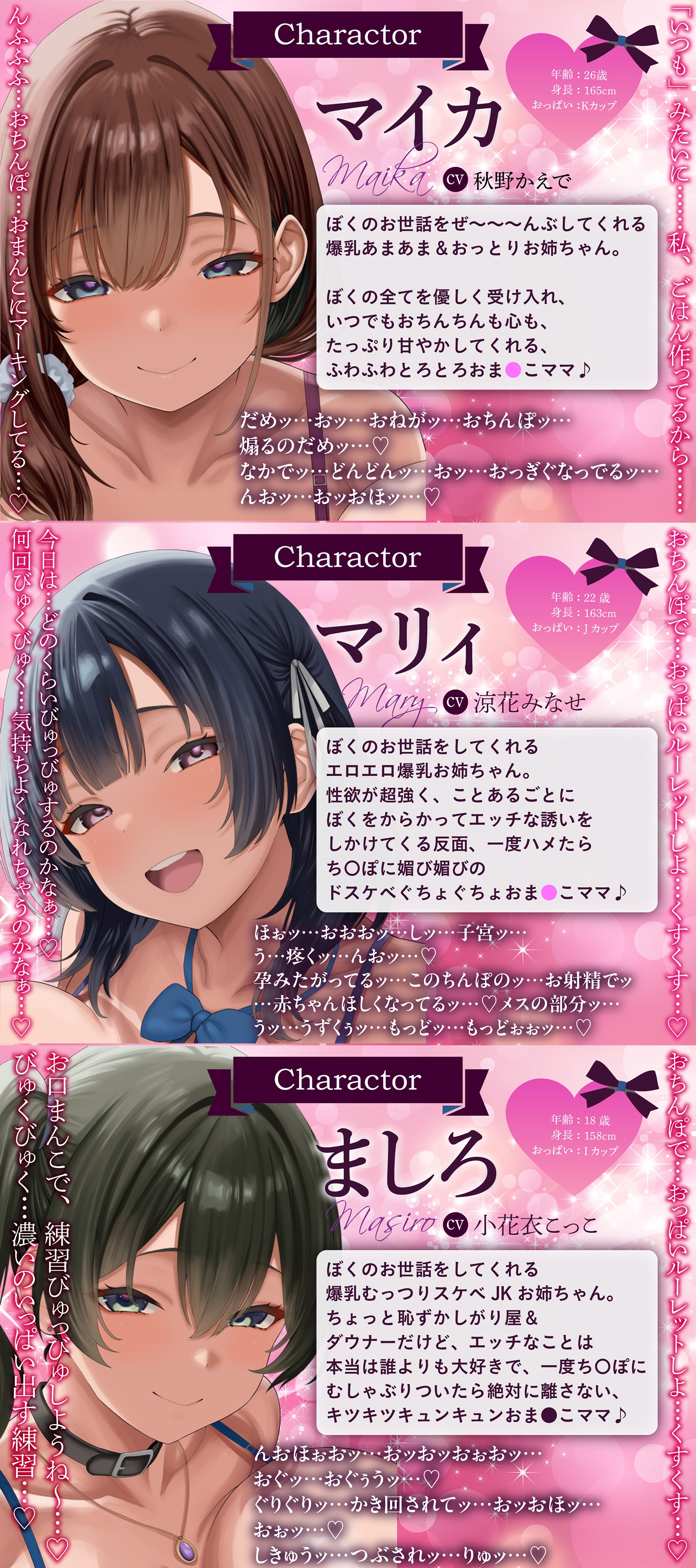 - 作品タイトル: 【おねしょた×全編孕ませ】孕ませ確定!お姉ちゃんママ~ぼくの子種を常時媚び媚びおねだりドスケベお姉ちゃんたちとのあまあま子作り性活~