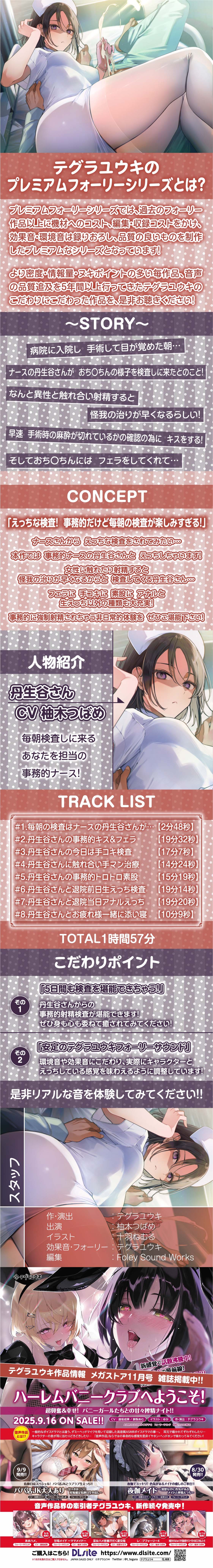 『【事務的強○射精】事務的ナースのどすけべ強○射精えっち~毎朝検査される僕のち〇ぽ~|テグラユウキ』この可愛いエロDLの販売日