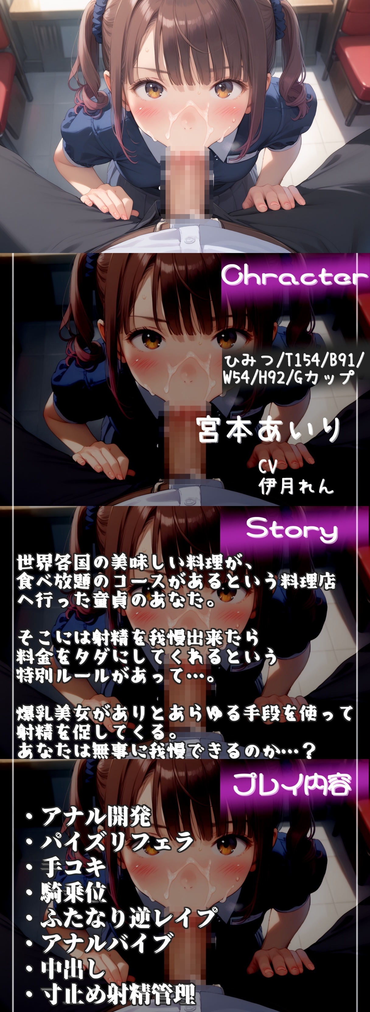 • 作品タイトル: 【30分越え✨】射精を我慢できたらタダになる即尺飲食店✨ 低音ダウナー○リふたなり店員にアナルを犯されながらの凄テク逆レ○プで精子が空になるまで吸い出されてしまう