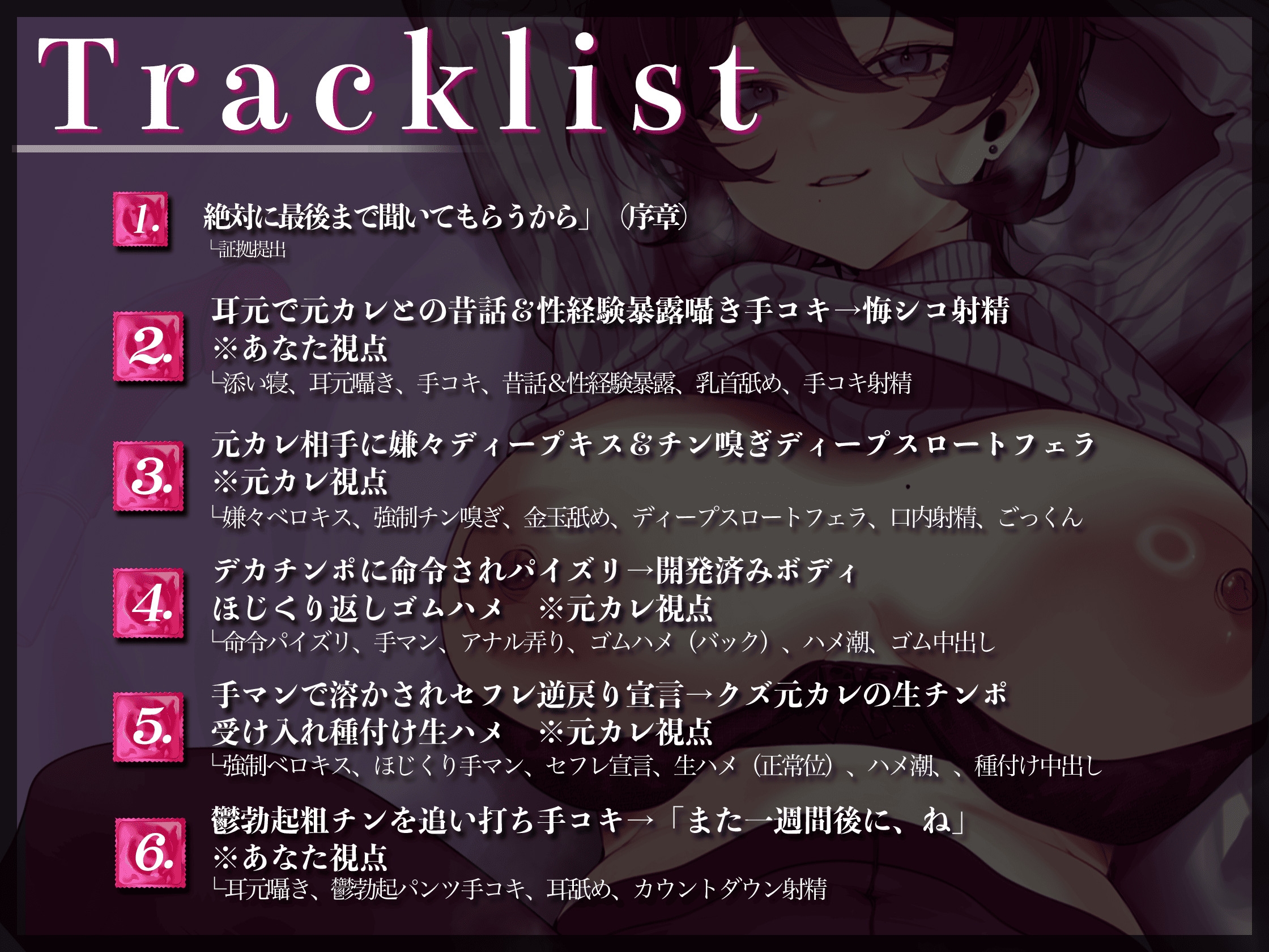 思う存分赤ちゃん汁をぴゅっ、ぴゅっ~して気持ちよくなってくださいっ◆【トラックリスト】元カレとのド下品交尾を見せつけられ悔シコ…♪◇