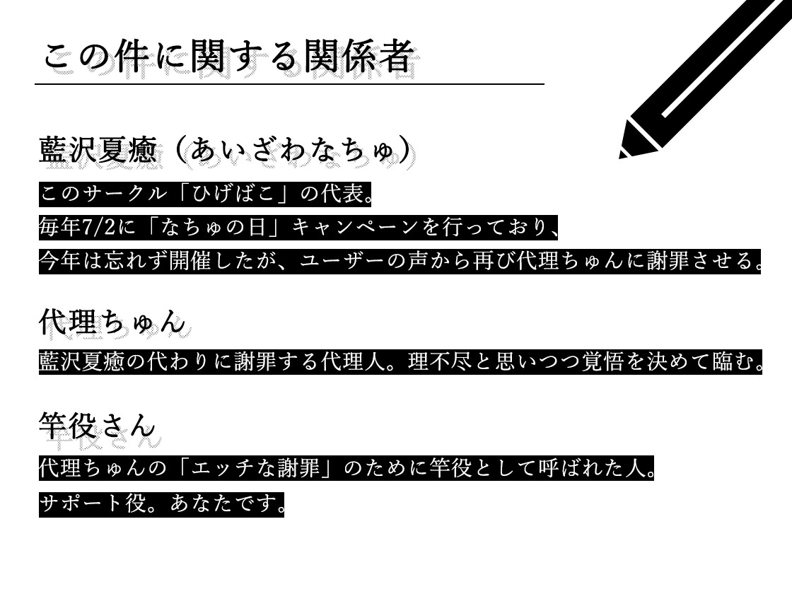 代理ちゅんの謝罪をサポートしてあげてください!(サークル主より)クレジット