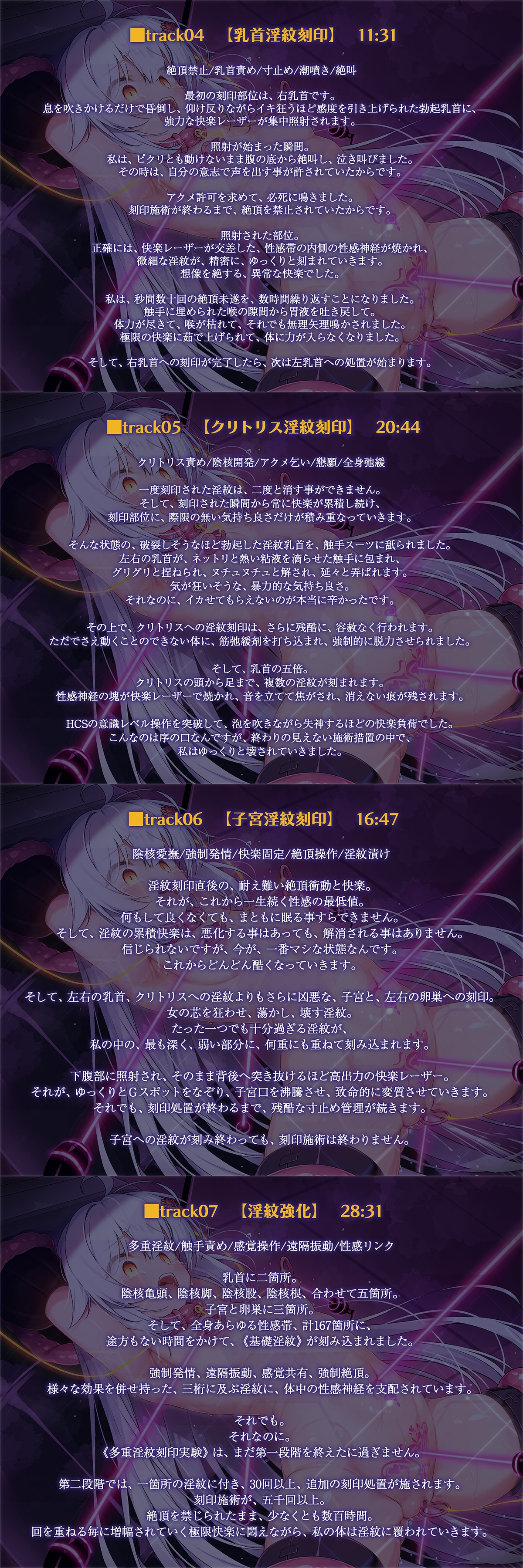 - 作品タイトル: 絶対服従プログラムVI 実験体4098 ~多重淫紋刻印実験~